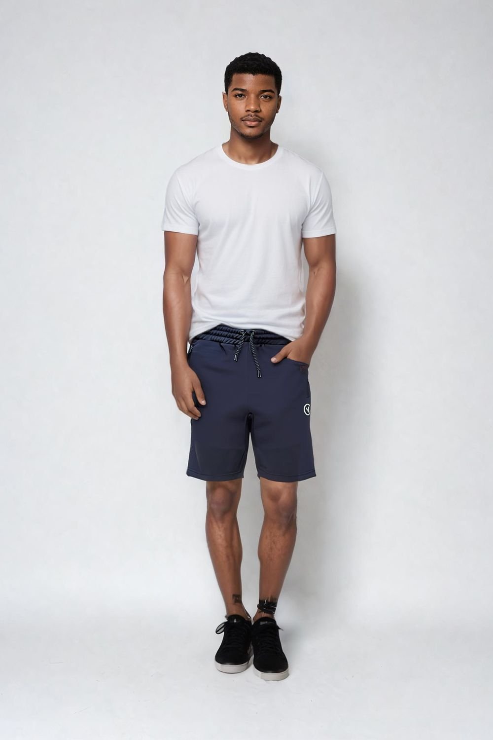 Super-soft fleece-back Milo Shorts in blue from Validate. Designed for comfort and versatility, these shorts feature zip-up side pockets for added security and convenience.