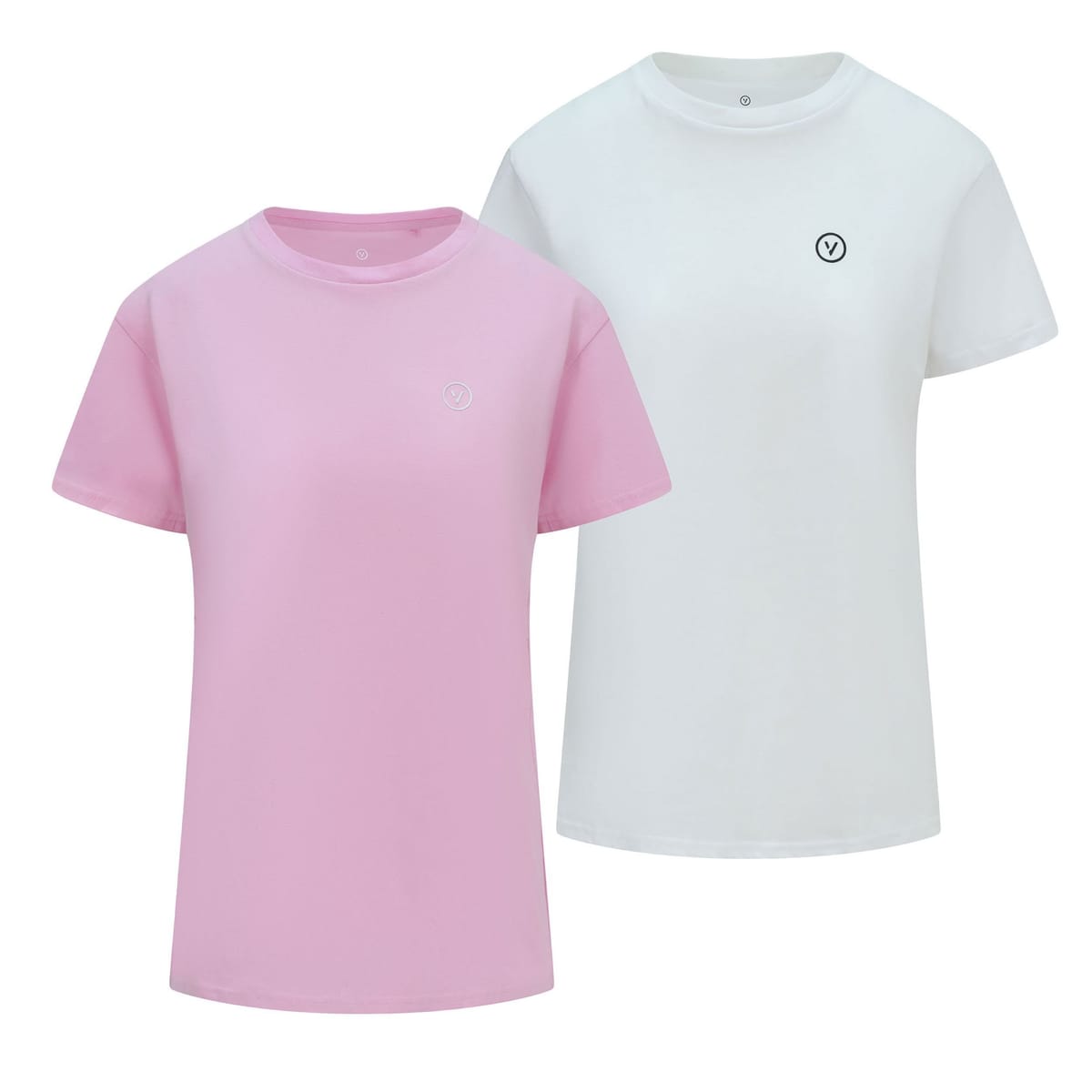The Validate Women's Pink Essential Logo T-Shirt 2 Pack is made from cotton.