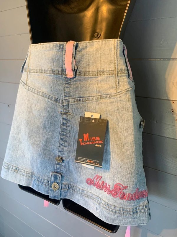 Designed with a light wash finish, this Y2K mini skirt features a playful pink detailing and an embroidered Miss Tendance logo. The skirt offers a comfortable and flattering fit thanks to its soft stretch denim composition.