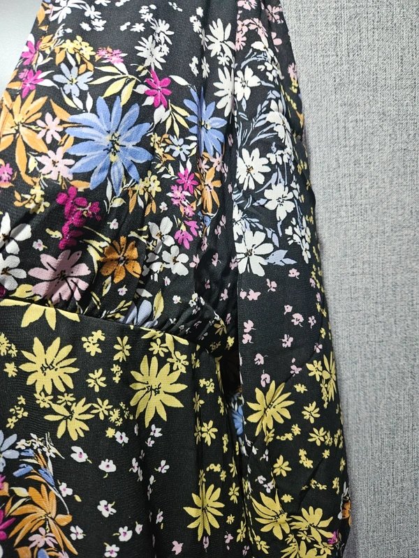 Stunning floral maxi dress 🌸. Featuring a black base with a multicolour floral print, this dress boasts long sleeves and an open back with a tie detail. Crafted from a beautiful lightweight fabric, it offers a flattering fit.
