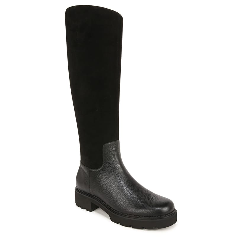 Stylish Vionic Women's Fallbrook High Shaft Boots in black. Crafted with a lightweight EVA outsole and a water-resistant medial zipper, these boots offer both comfort and durability. Ideal for everyday wear.