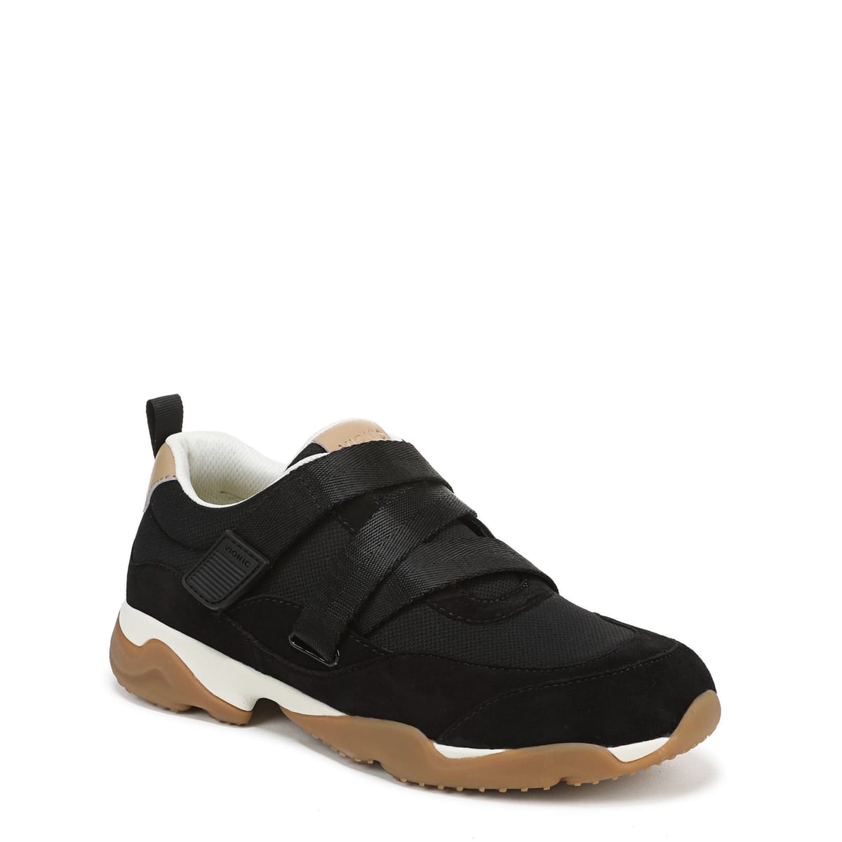 The Vionic Women's Walk Slim Gia Trainers in Black is made from suede, mesh.
