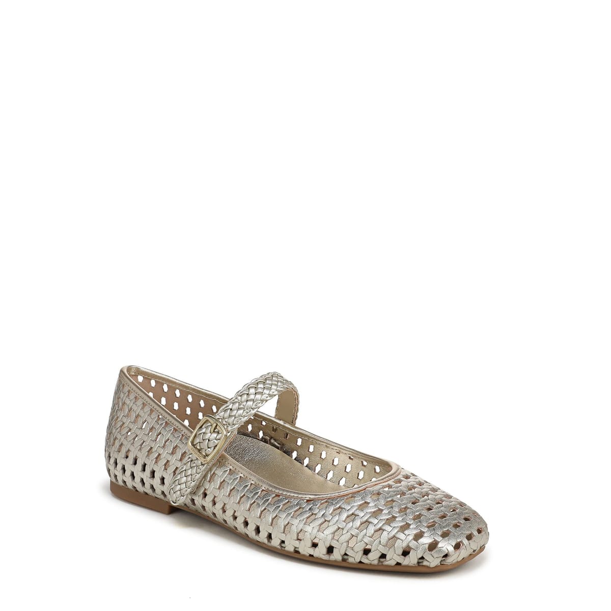 The Vionic Women's Alameda Woven Mary Jane in Gold is available in sizes 4, 5, 5.5, 6, 6.5, 7, 8.