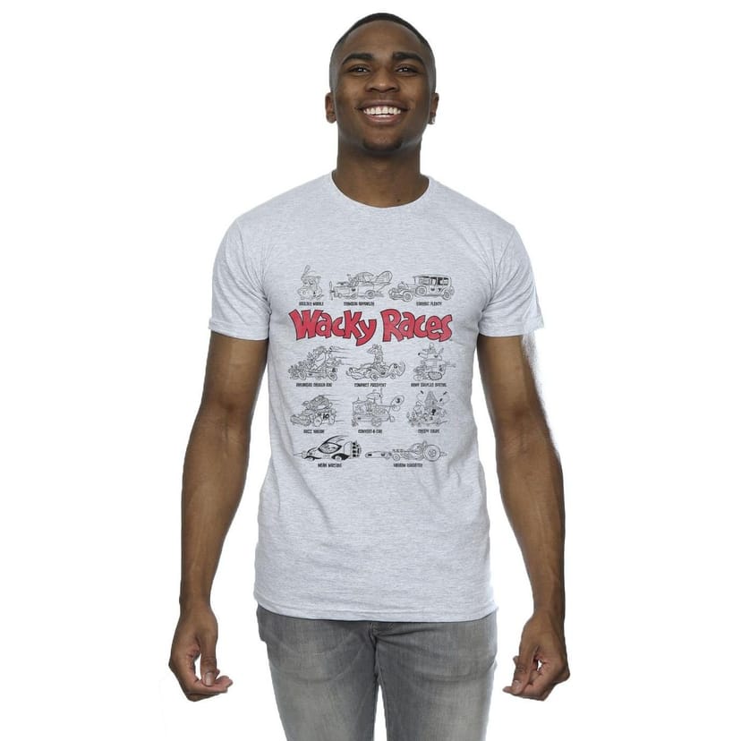 The Wacky Races Men's Car Lineup T-Shirt in Grey is available in sizes 2XL, 3XL, 4XL, 5XL, L, M, S, XL.