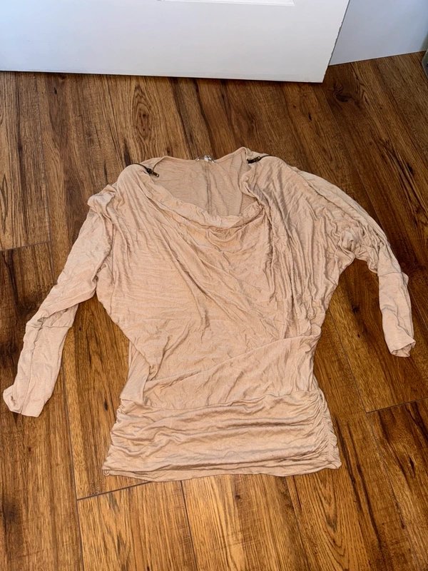 A chic WALG beige oversized top in size 10, worn lightly and kept in great condition. This piece has a gorgeous vintage-inspired feel thanks to its soft neutral tone, relaxed silhouette, and unique detailing — perfect for everyday wear, work outfits, or dressing up with accessories.