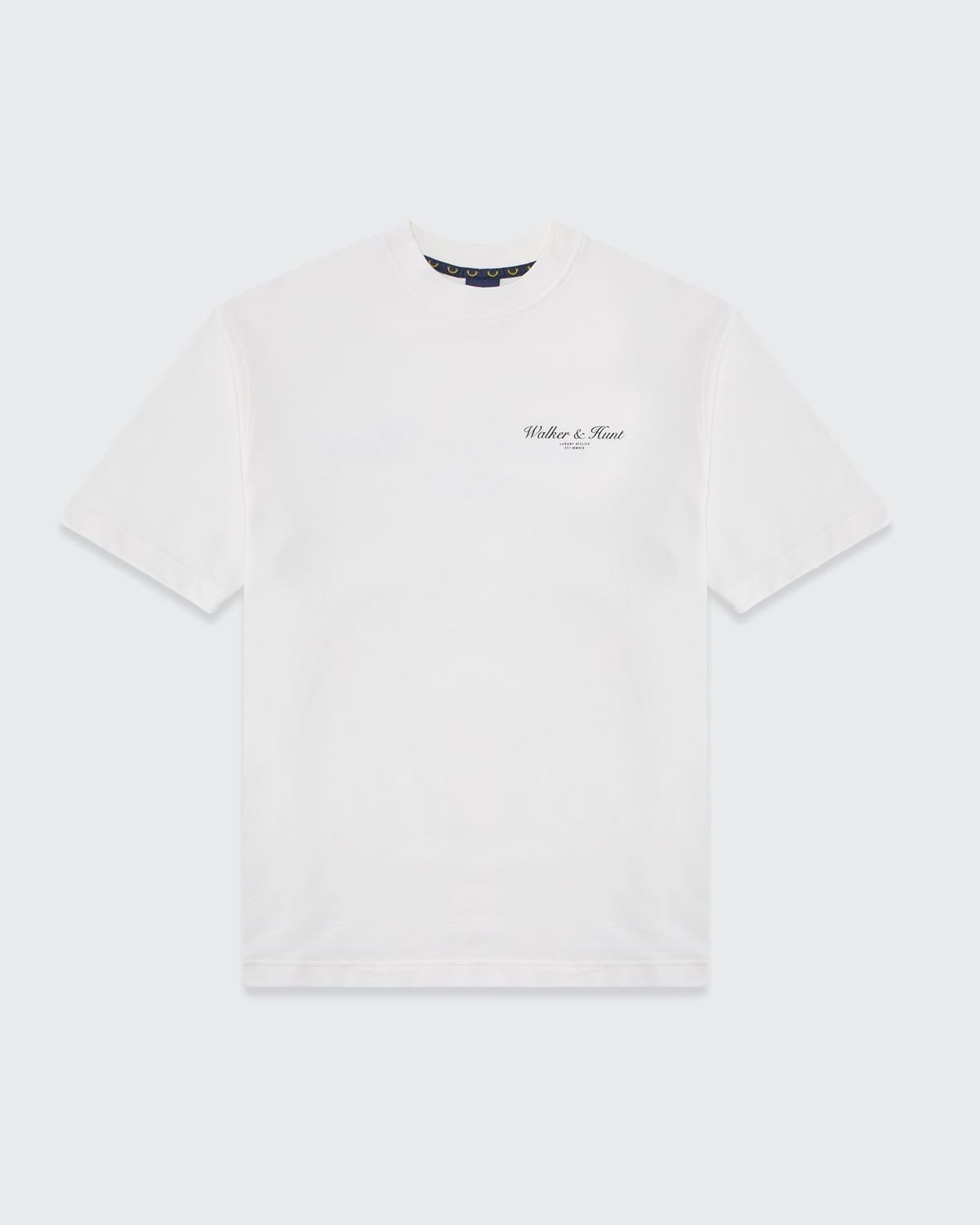 The Walker & Hunt Off-White Heavyweight Luxury Tee is available in sizes 2XL, L, M, S, XL.