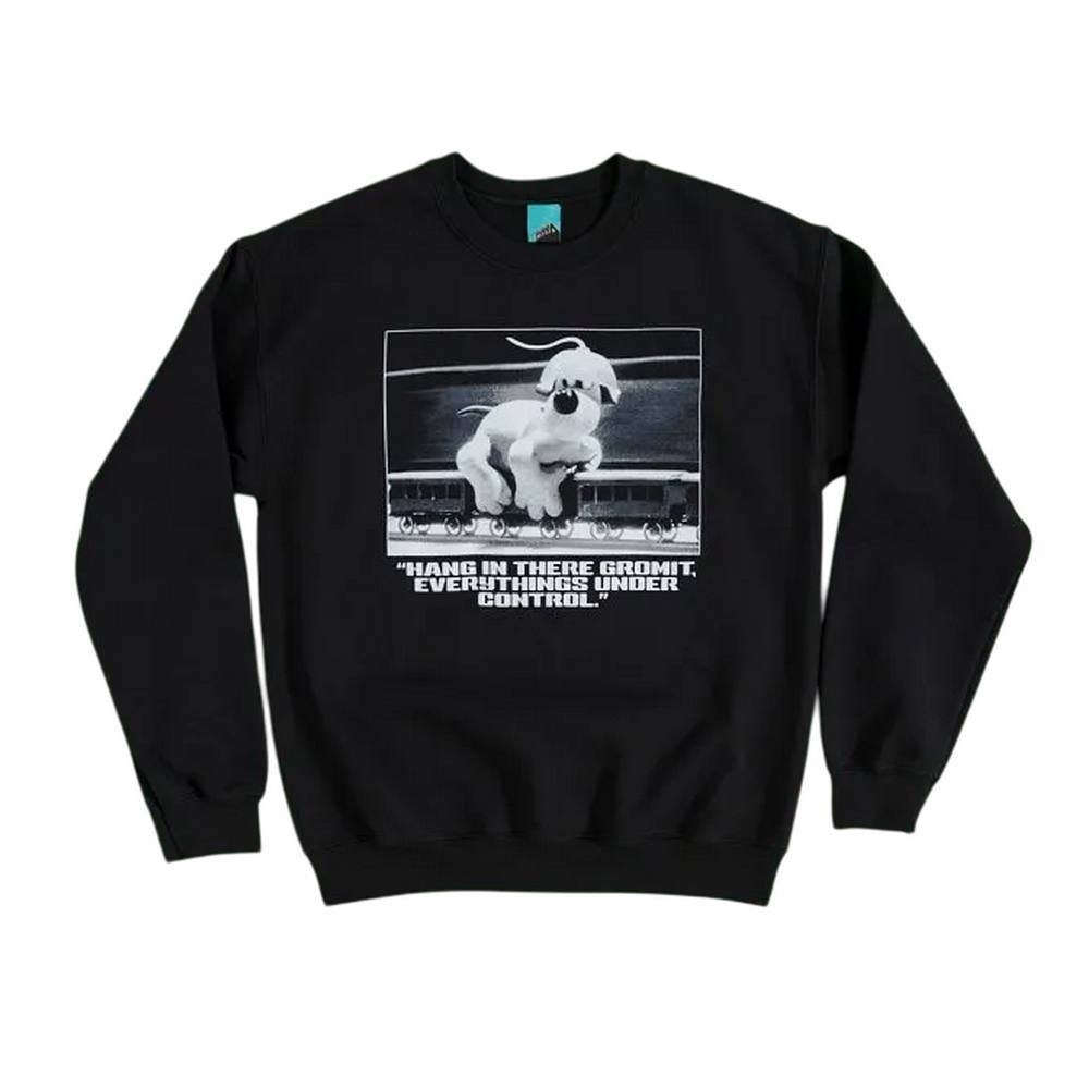The Wallace & Gromit Men's Hang In There Sweatshirt in Black is available in sizes L.