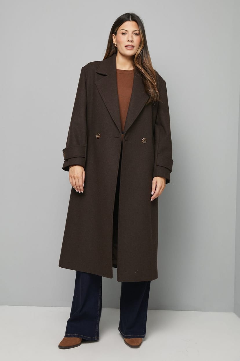 The Wallis Chocolate Double Breasted Car Coat is ideal for casual, work, evening.