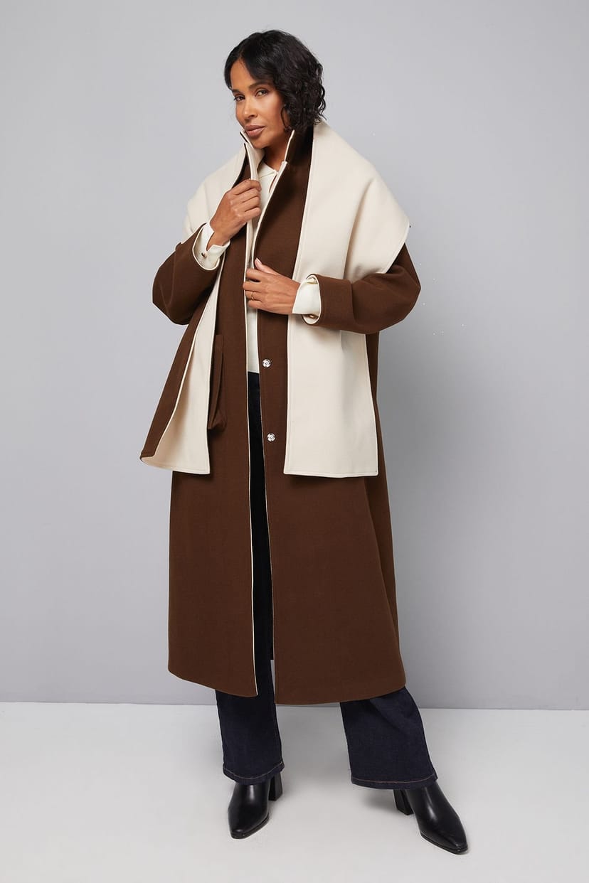 The Wallis Chocolate Double Faced Scarf Detail Coat is ideal for casual, work, evening.