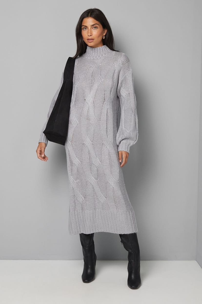 The Wallis Grey Marl Chunky Cable Knit Midi Dress is ideal for casual, evening, date-night.