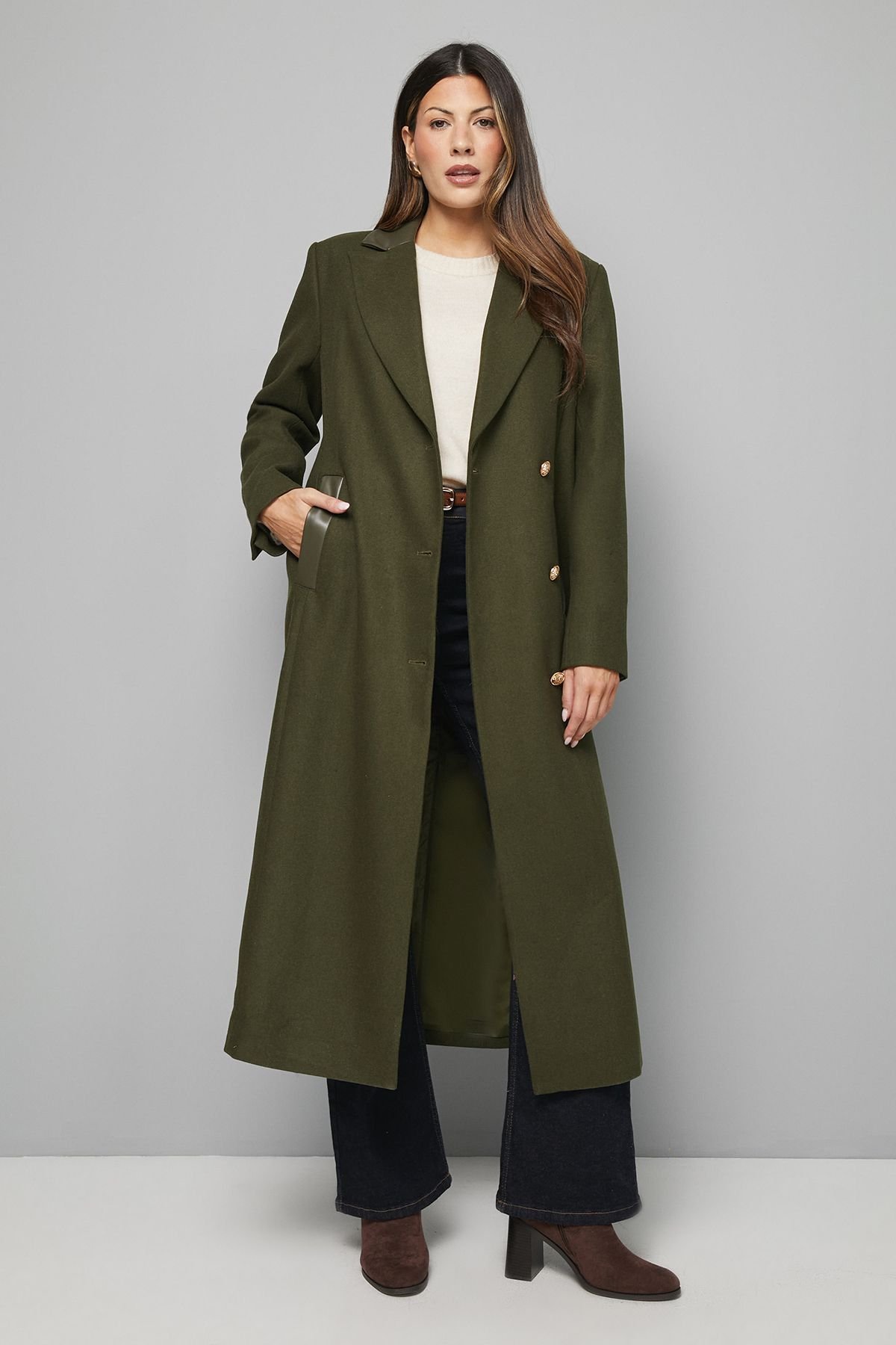 The Wallis Khaki Wool Blend Pocket Detail Maxi Coat is ideal for casual, work, evening.