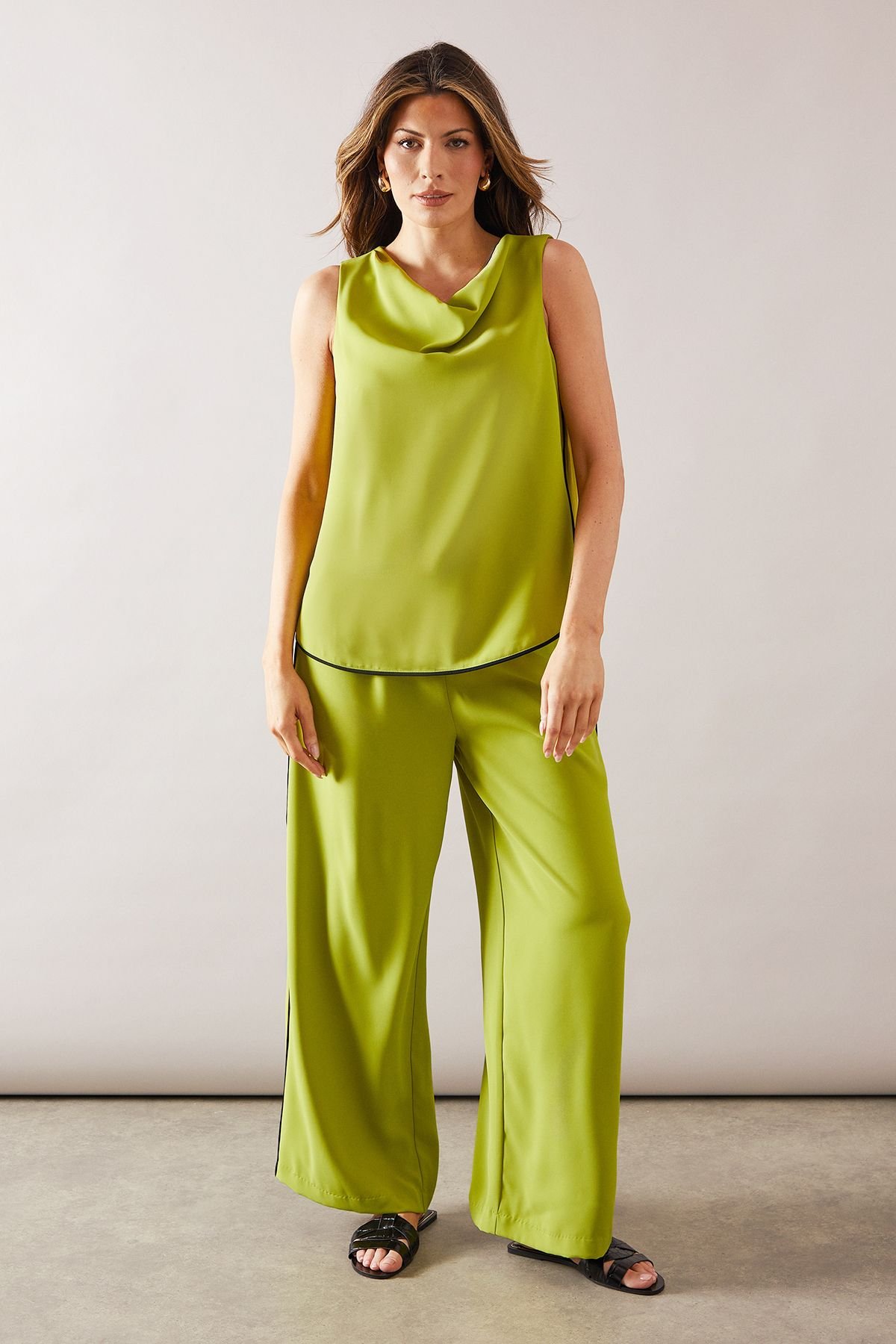 The Wallis Lime Contrast Stripe Split Trouser in Lime is ideal for evening, date-night, party.