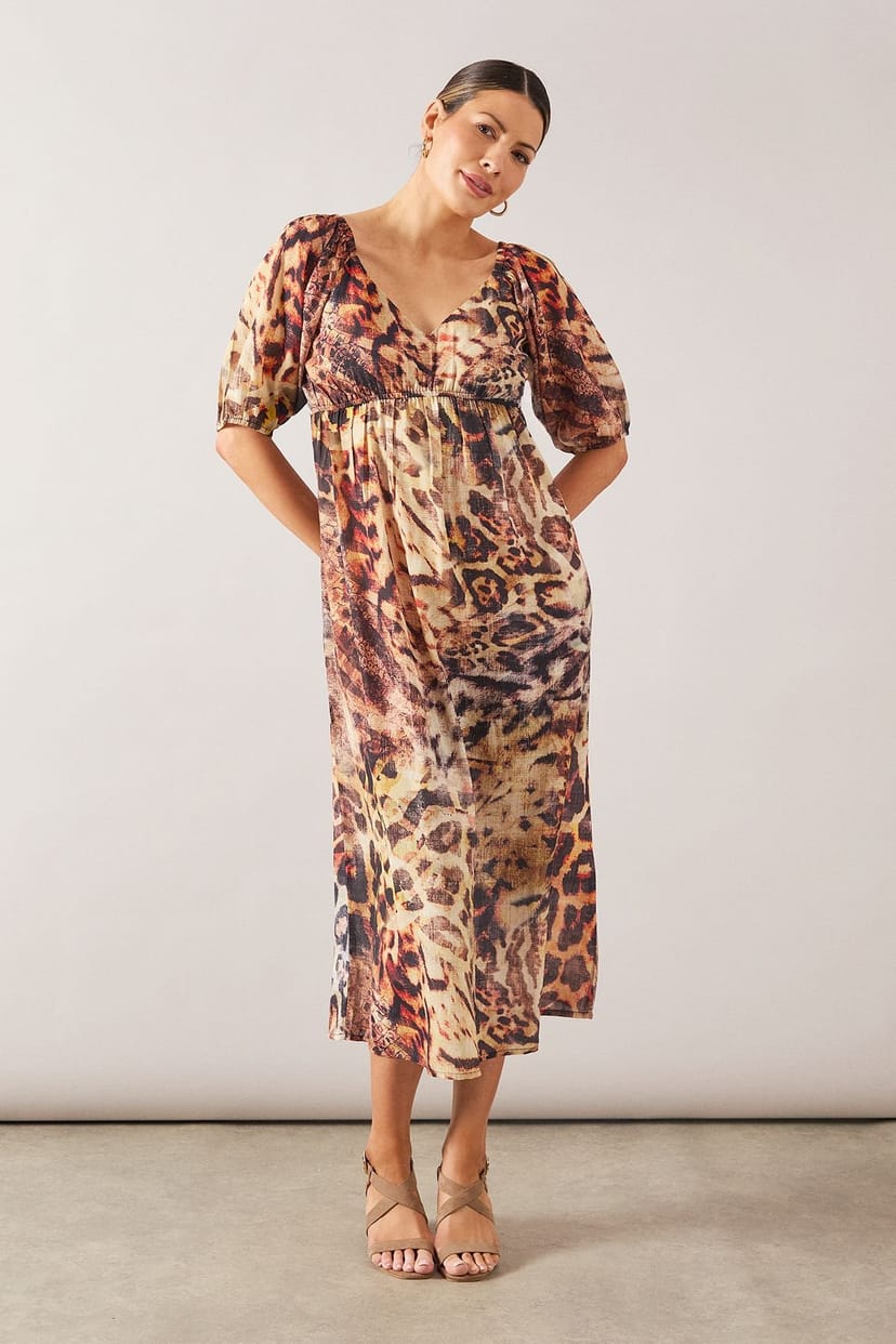 The Wallis Natural Animal Print Midi Dress is ideal for evening, party, date-night.