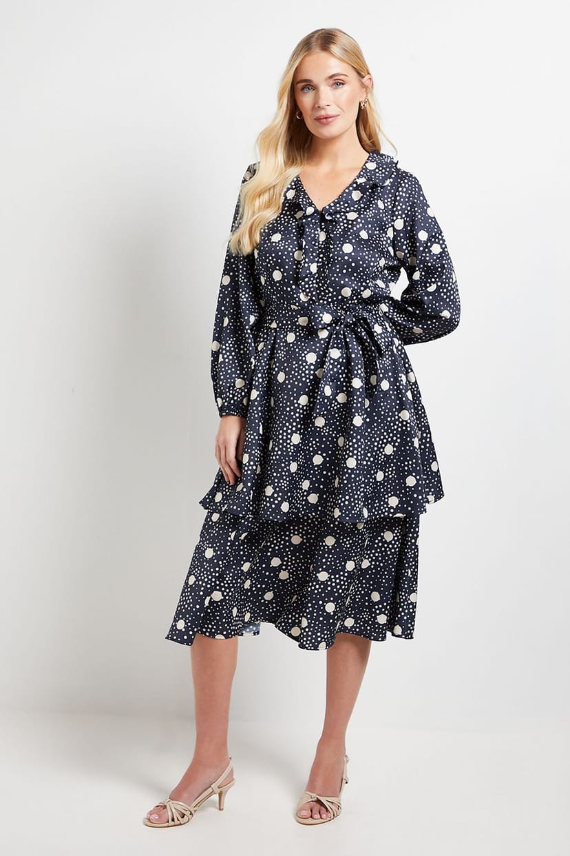The Wallis Navy Floral Ruffle Midi Dress is ideal for casual, daytime, evening.