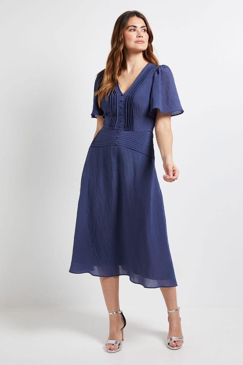 The Wallis Navy Pintuck Midi Dress with Flutter Sleeves is ideal for evening, date-night, party.