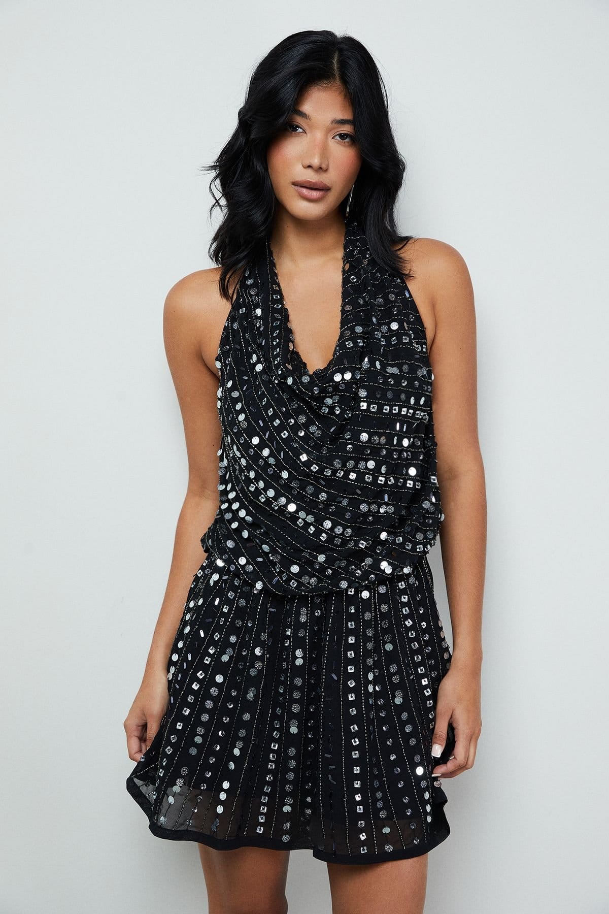 Pair with silver strappy heels and a clutch bag for evening events.