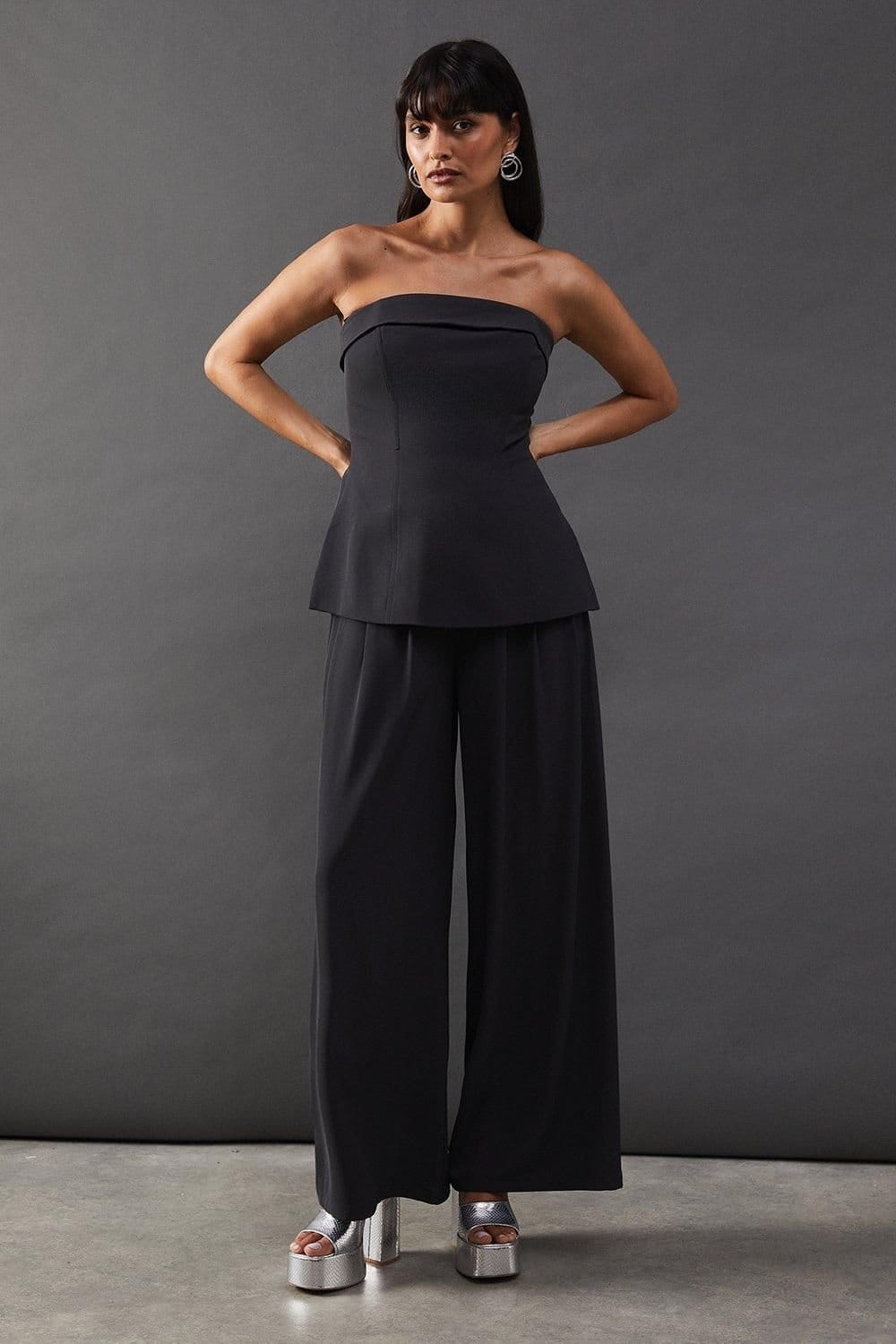 The Warehouse Charcoal Wide Leg Trousers with Drape Pleat Detail is ideal for evening, party, date-night.