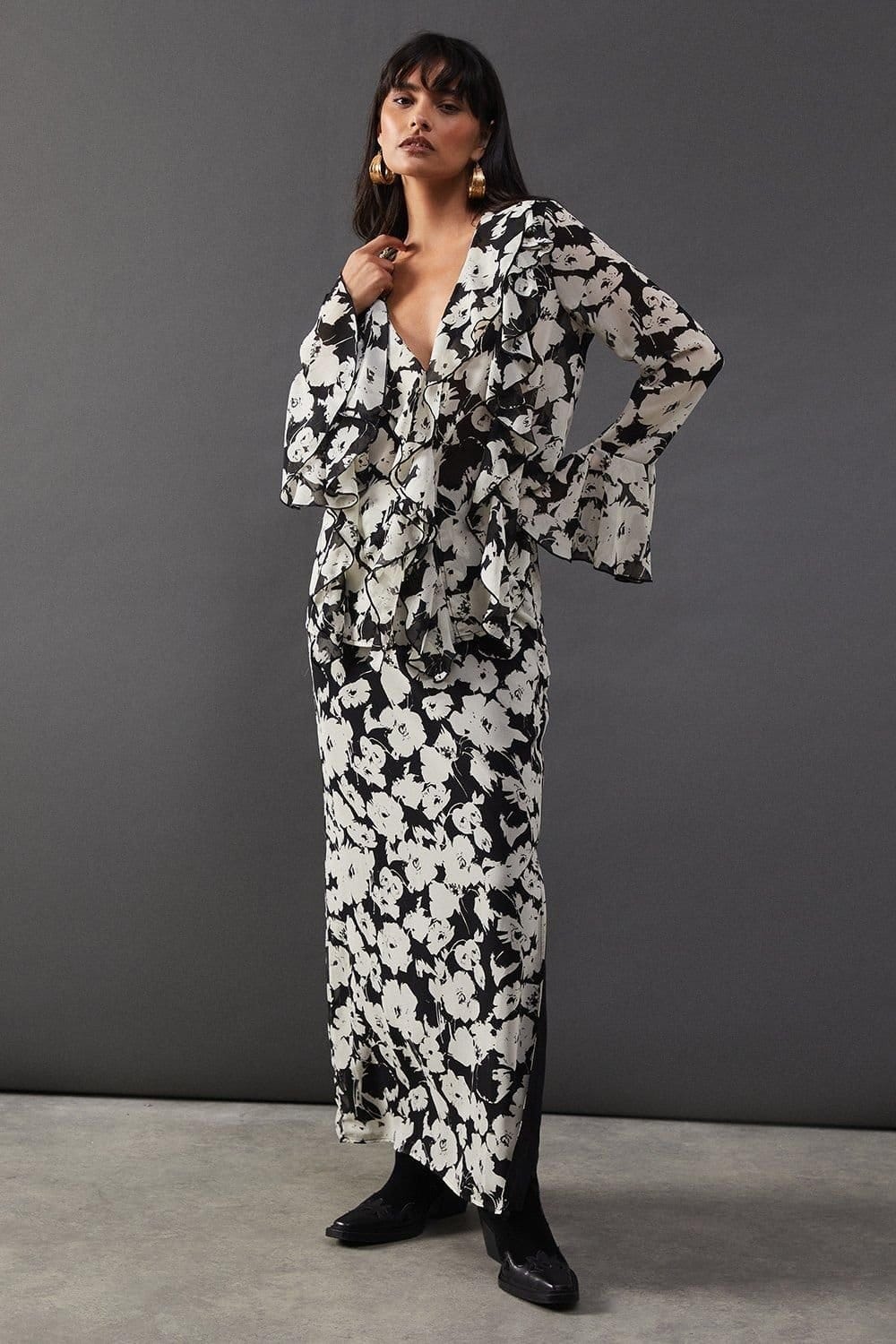 The Warehouse Women's Floral Chiffon Maxi Skirt in Mono is made from chiffon.