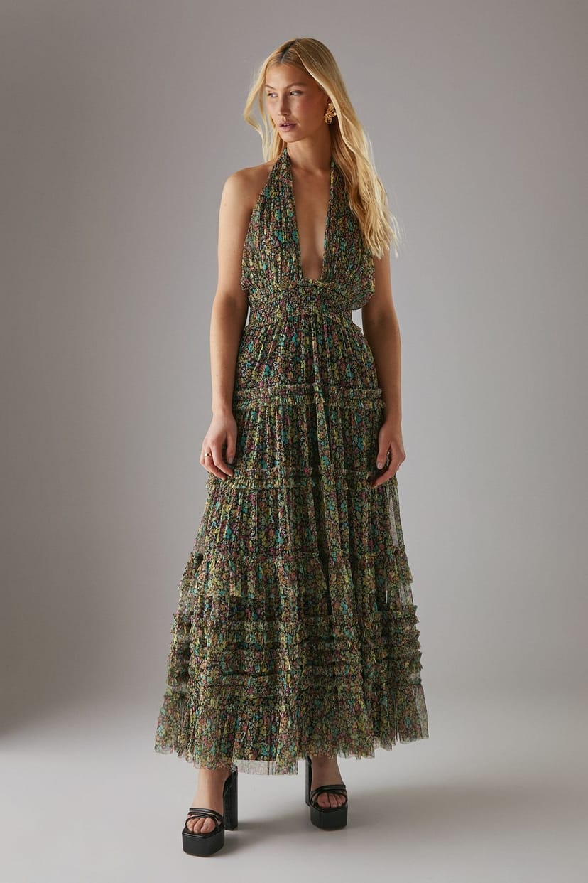 The Warehouse Multicolor Tulle Halter Maxi Dress is ideal for evening, party, date-night.