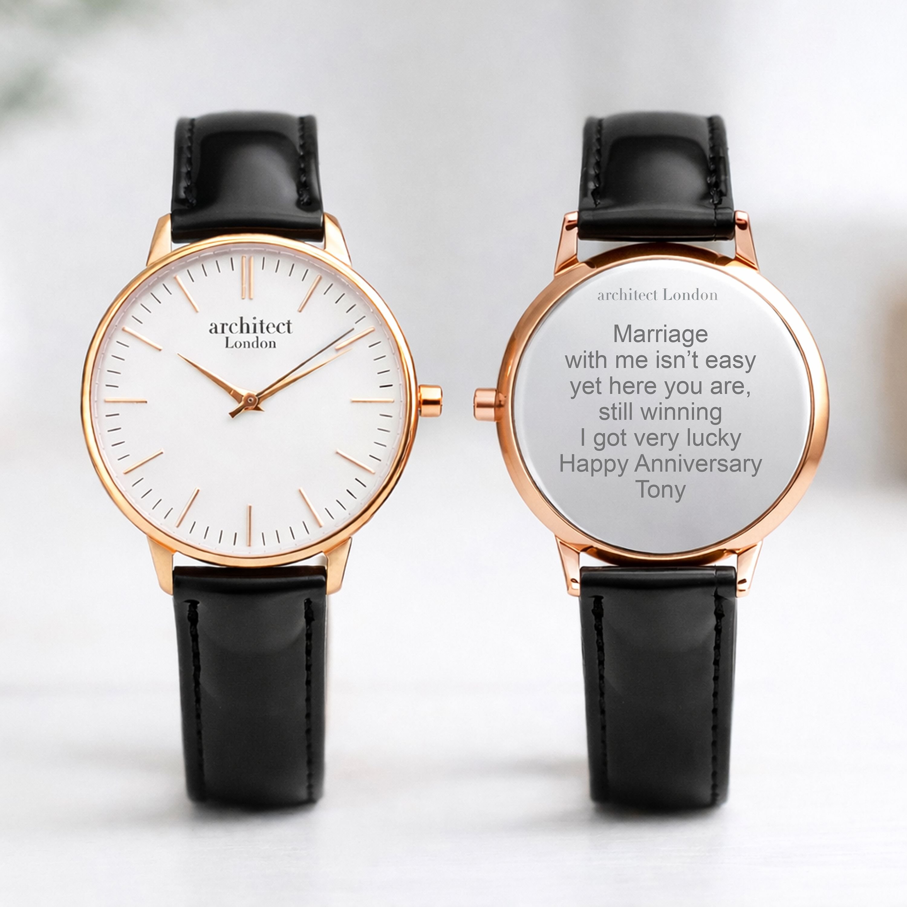 The Wear We Met Rose Gold Blanc Watch - Engraved is ideal for evening, special occasions, everyday.