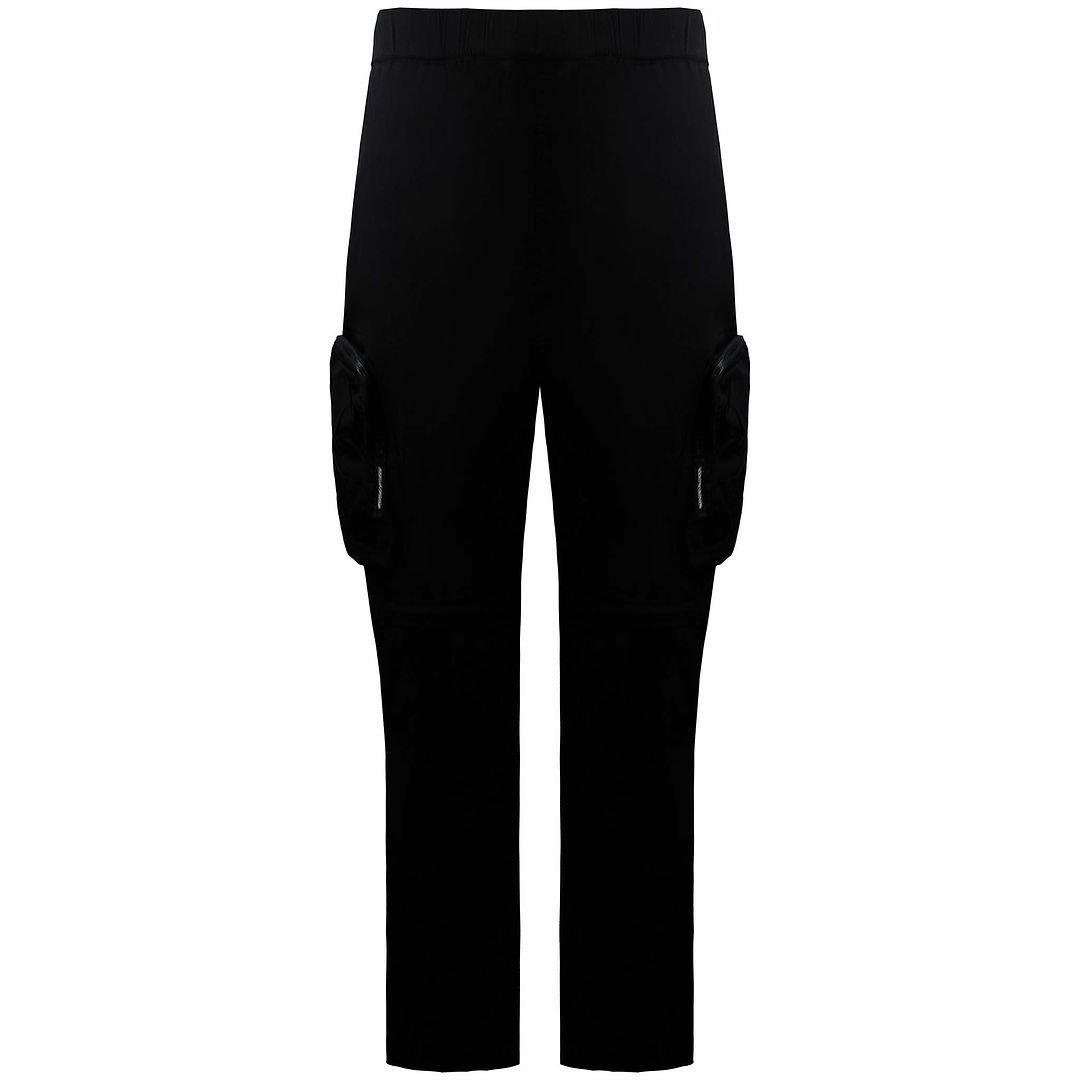 Sleek and versatile black track pants with a contemporary streetwear aesthetic. Made from stretch fabric for comfort and style, featuring practical pockets and a modern design.