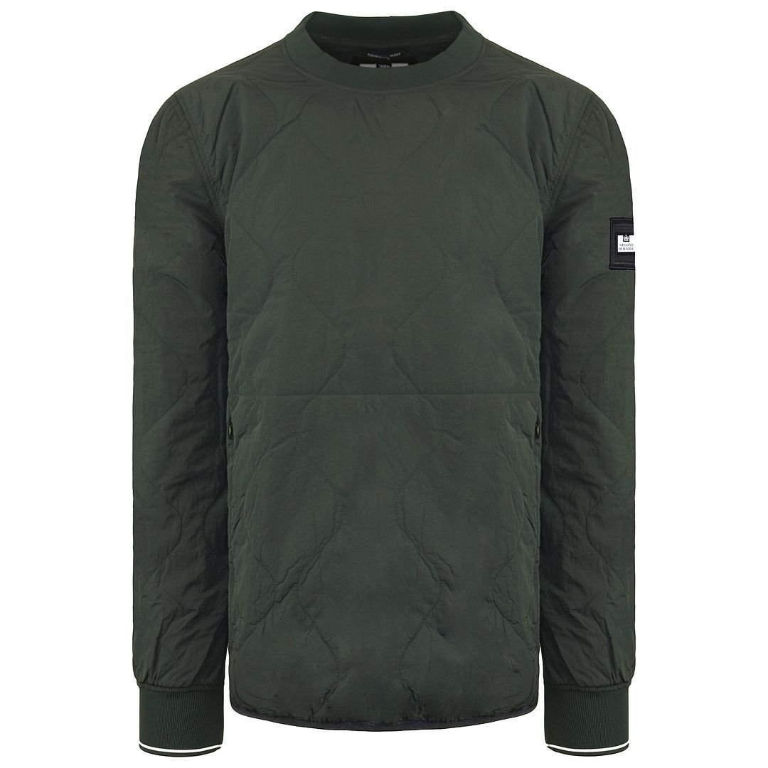 Stylish green quilted crew neck sweater by Weekend Offender. Featuring a water-resistant exterior and quilted interior for added warmth. Ideal for casual outings or layering.