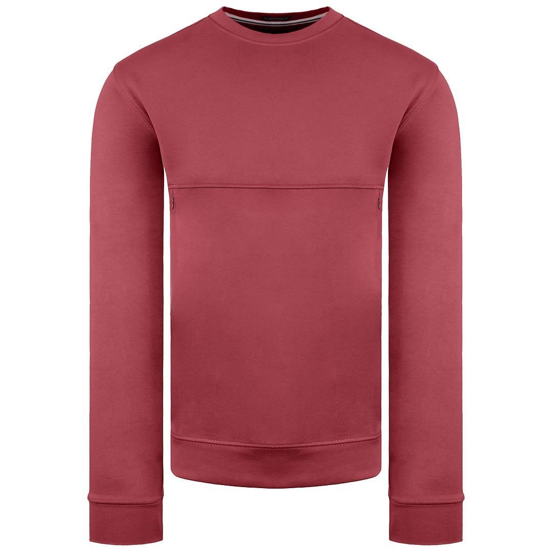 Stylish red crew neck sweater by Weekend Offender. Made from soft, comfortable fabric, it features a classic fit and a subtle textured panel on the front. Ideal for casual wear.