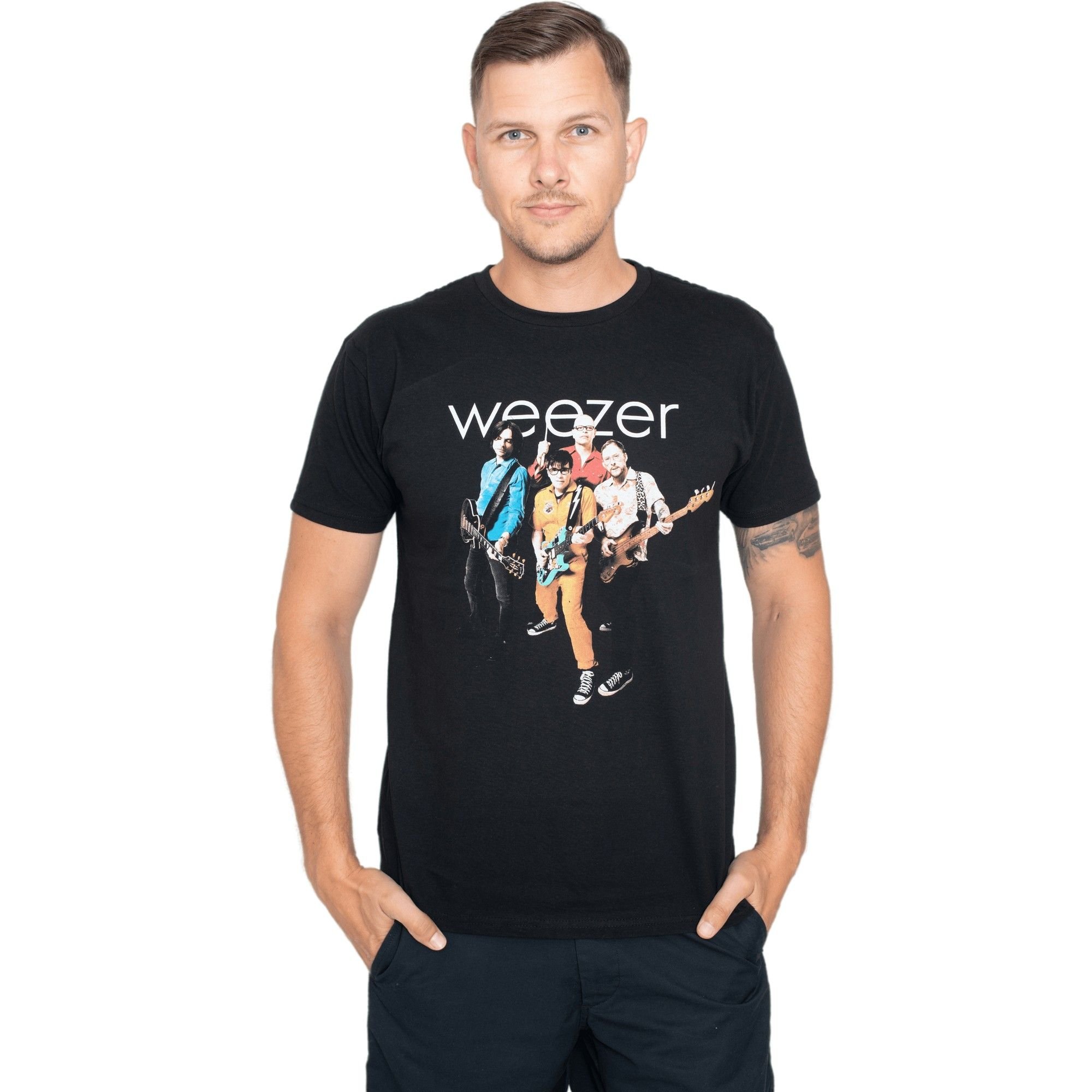The Weezer Men's Band Cotton T-Shirt in Black is available in sizes 2XL, L, M, S, XL.