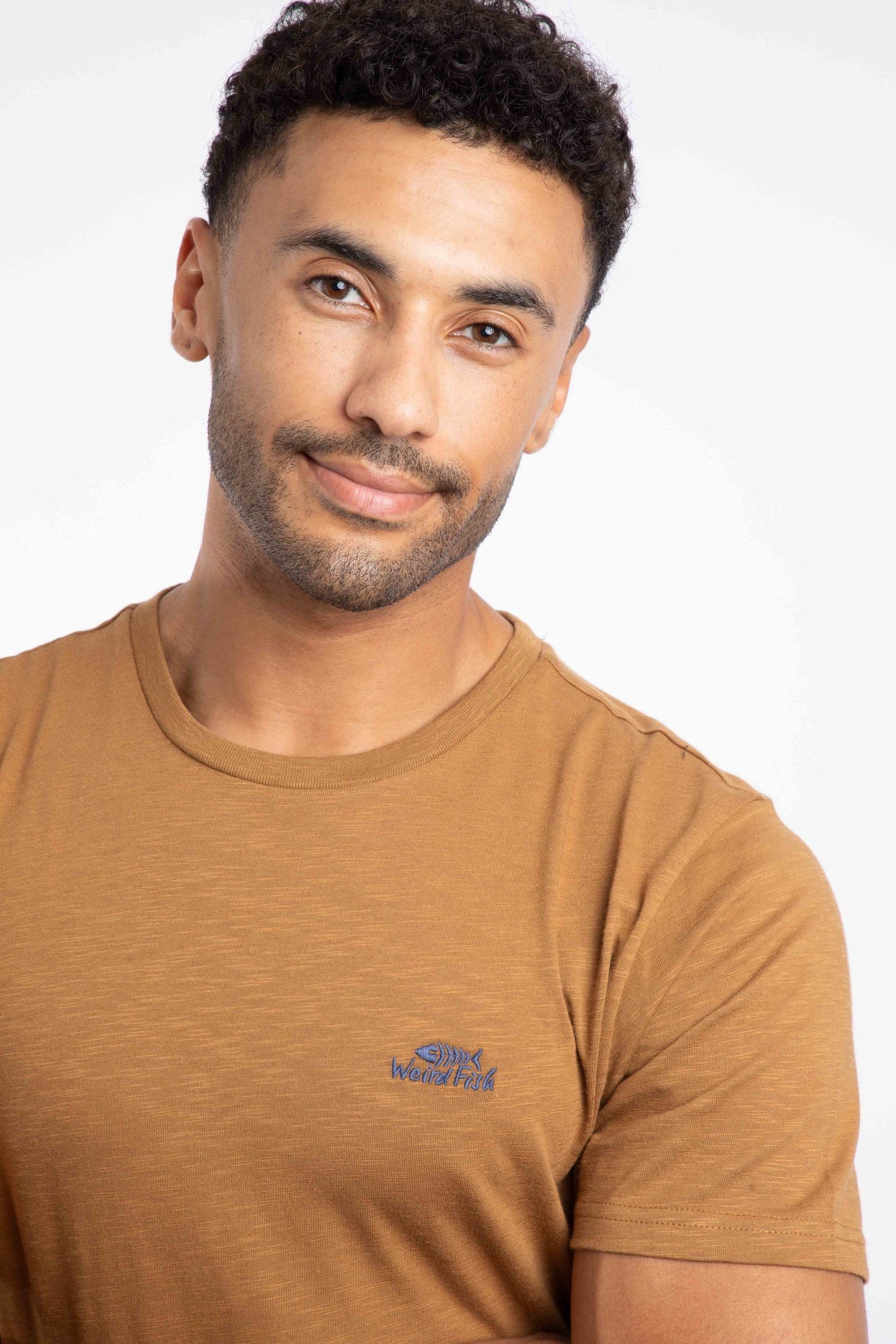 The Weird Fish Men's Brown Branded T-Shirt is ideal for casual, everyday.