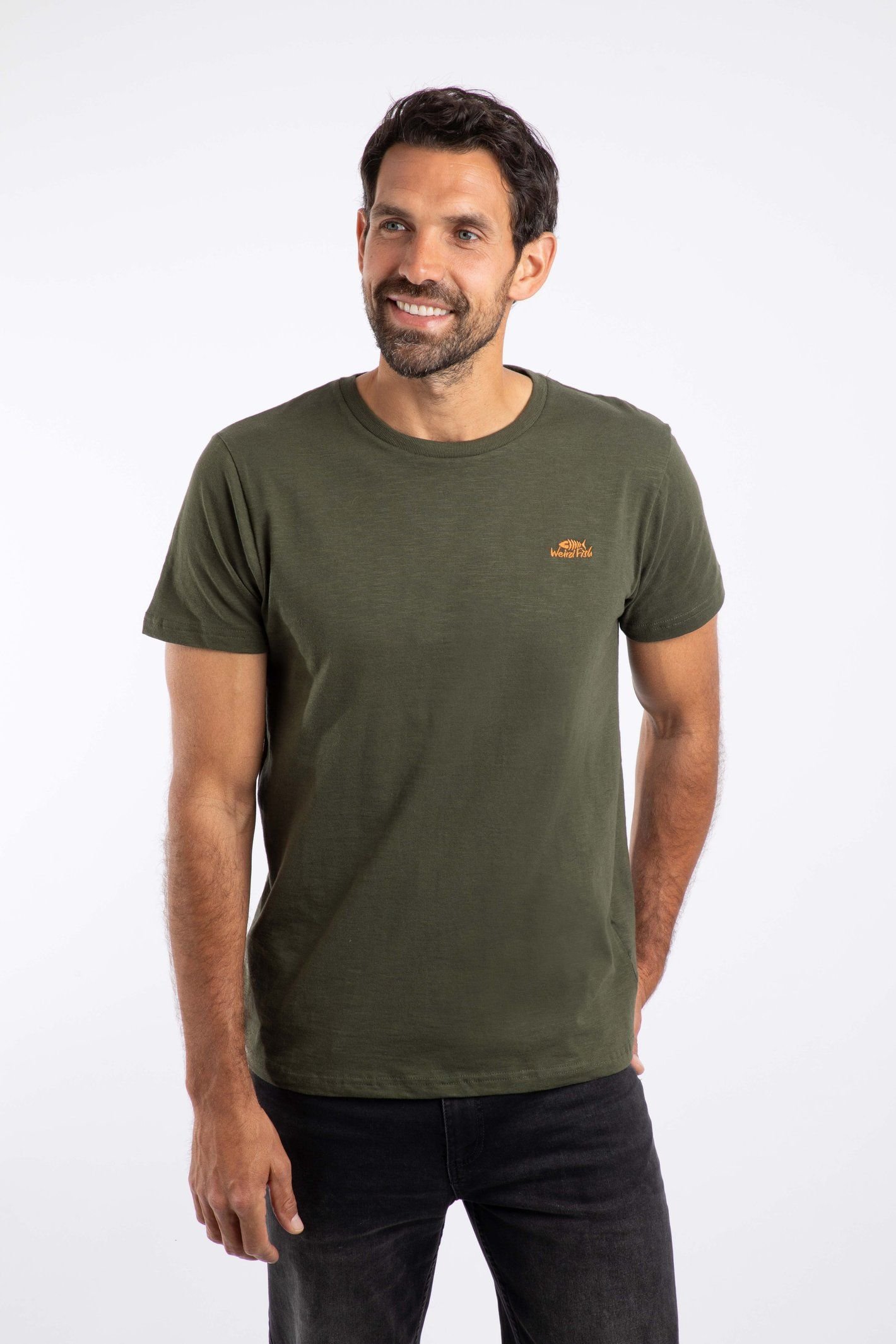 The Weird Fish Men's Fished Branded T-Shirt in Dark Green is ideal for casual, everyday.