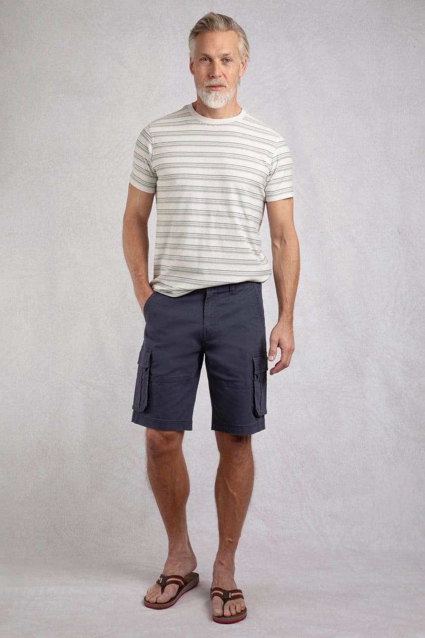 Stylish Navy cargo shorts by Weird Fish, perfect for summer adventures. Featuring two angled front pockets, two back pockets, and two cargo pockets for practicality and style.