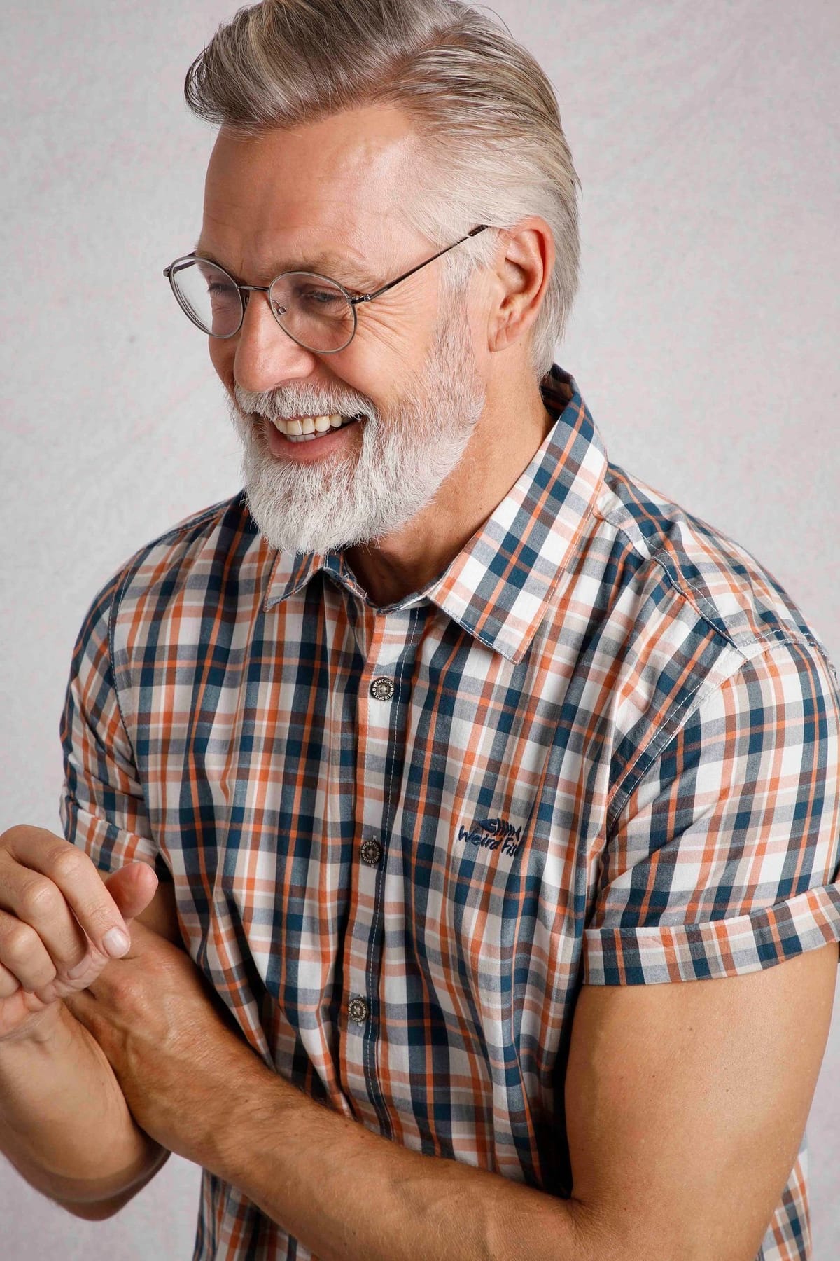 Stylish pale orange check shirt by Weird Fish. Made from lightweight cotton, it features a classic short-sleeve design with a button-down front. Ideal for casual outings or smart-casual looks.