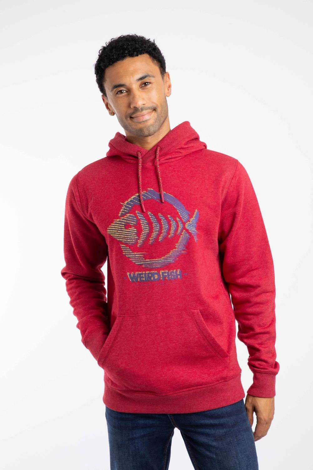 The Weird Fish Red Graphic Popover Hoodie for Men is ideal for casual, everyday.
