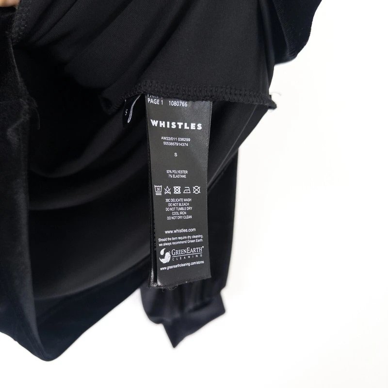 The Whistles Velvet Top Blouse with Asymmetric Neck in Black is available in sizes S.
