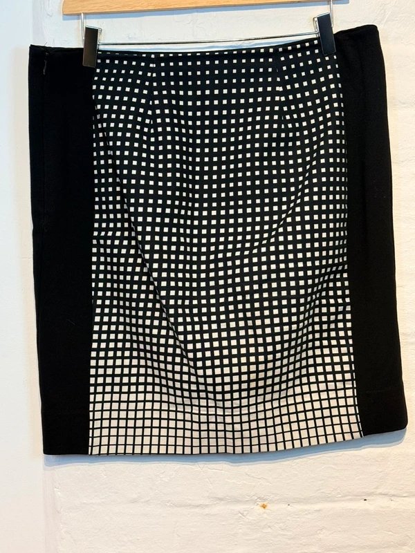 This chic and stylish pencil skirt from White House Black Market features a bold black and white grid check panel. Perfect for smart party occasions, this skirt is a great addition to any wardrobe. Crafted from a blend of materials, it offers a comfortable and flattering fit.