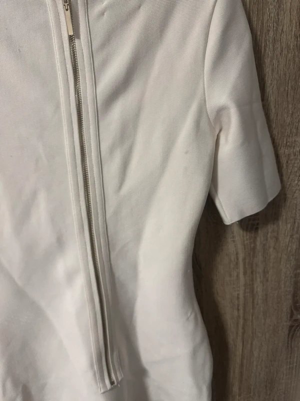 White Bodycon Dress — the must-have occasion dress for wedding guests, evening events, dinner parties. Designed in vibrant white, this bodycon dress features a zipper closure, and a sheer bodycon silhouette for a flattering fit. Crafted from lightweight sheer polyester with subtle shimmer, it catches the light beautifully. Includes a full-length jersey slip lining for comfort and coverage.