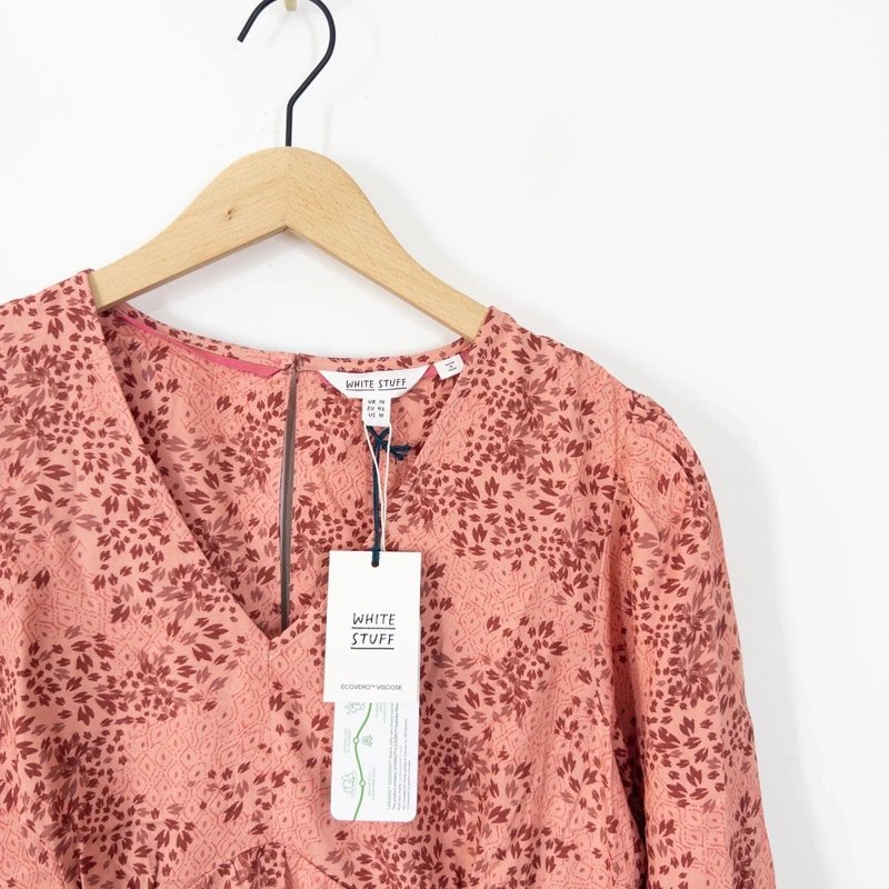Elevate your wardrobe with this pink multi floral printed Ecovero Viscose tunic from White Stuff. Featuring a V-neckline and a relaxed fit, this piece is perfect for casual outings.
