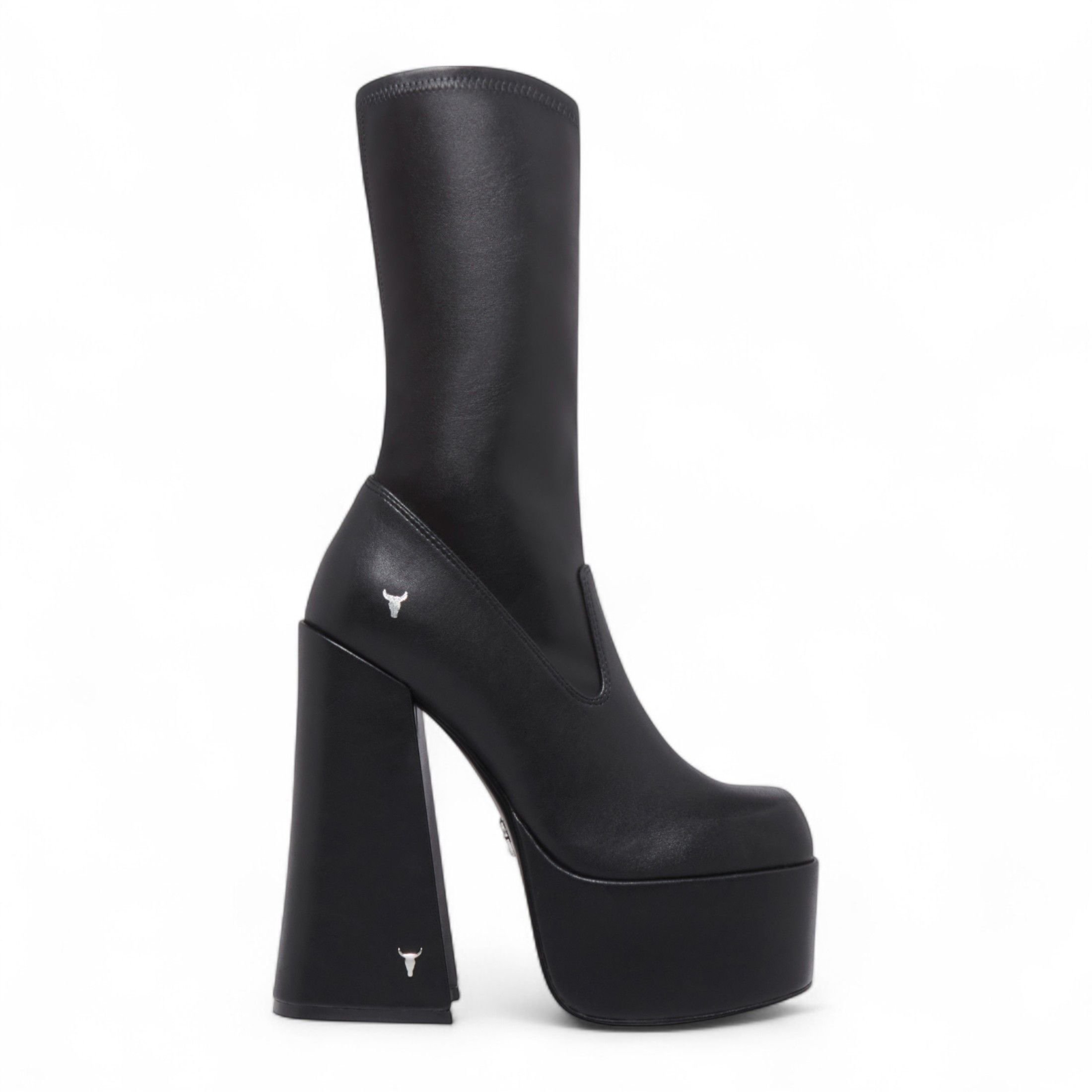 The Windsor Smith Black Mid-Calf Sock Platform Goth Heel Boots is ideal for evening, night-out, party.