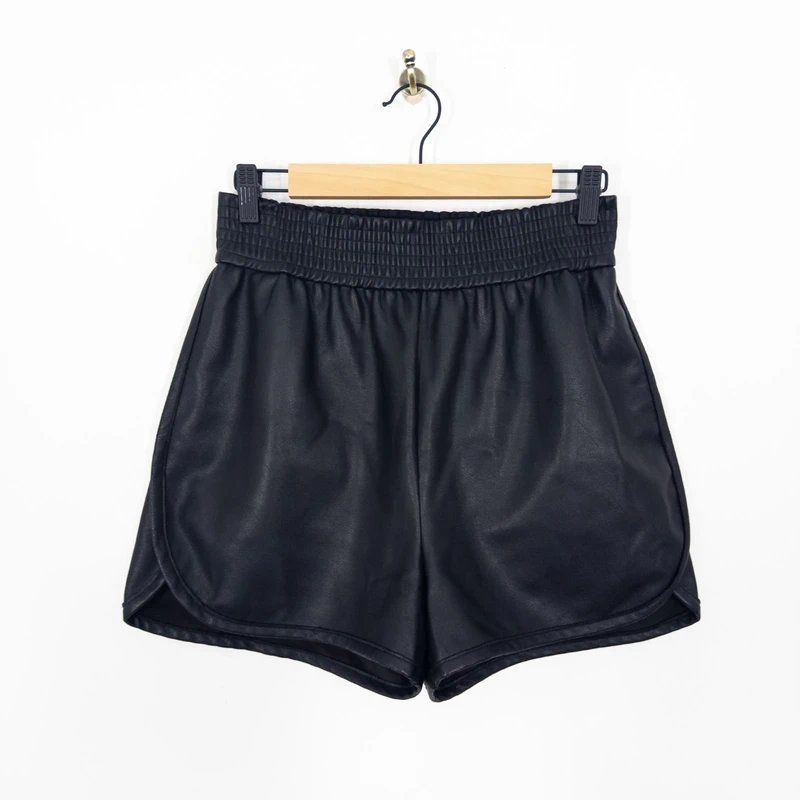 Crafted with faux leather, these shorts feature an elasticated waist and are perfect for casual outings. The sleek design and elasticated waistband offer a comfortable and stylish fit.