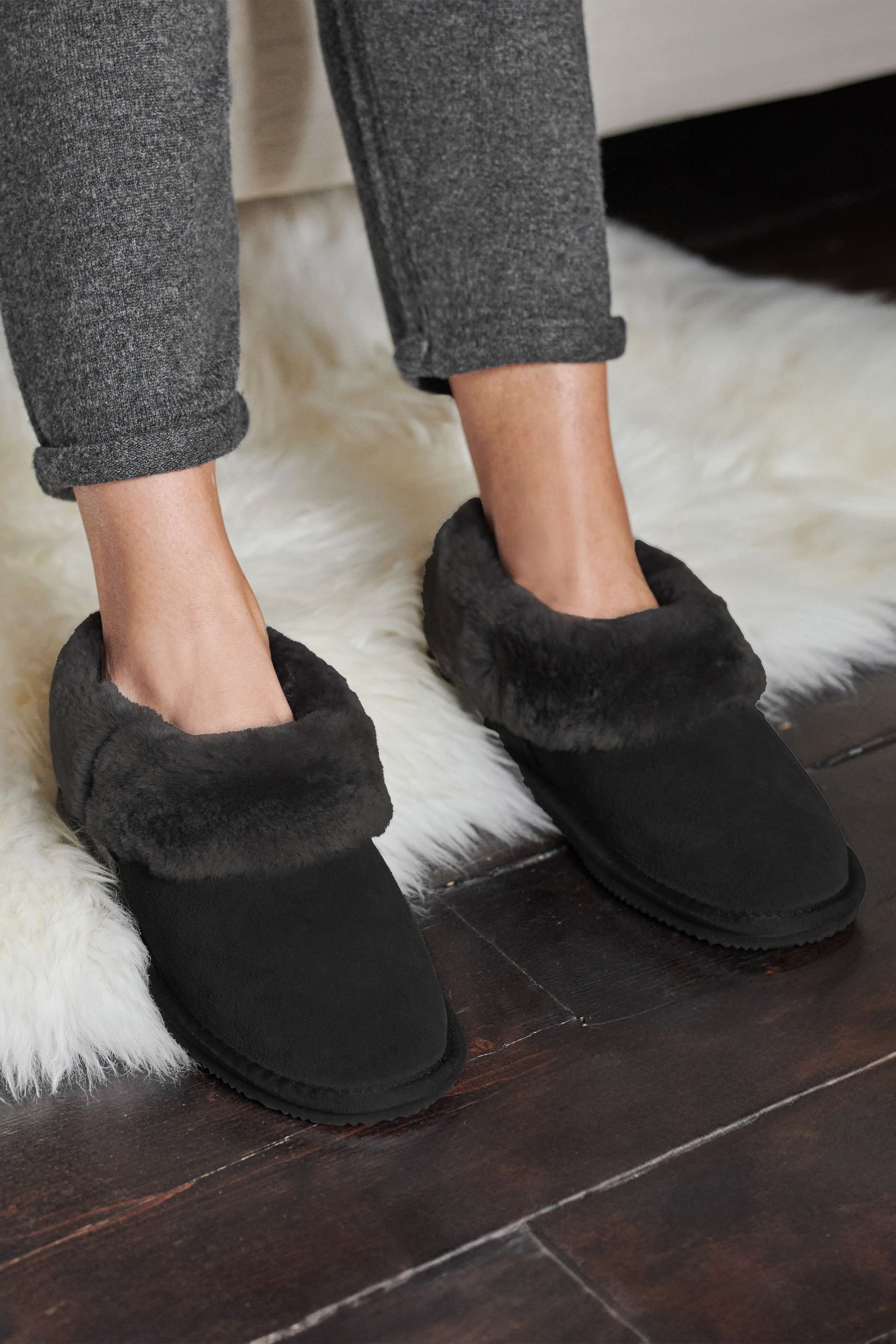 The WoolOvers Black Sheepskin Slipper Boot for Women is made from sheepskin, rubber.