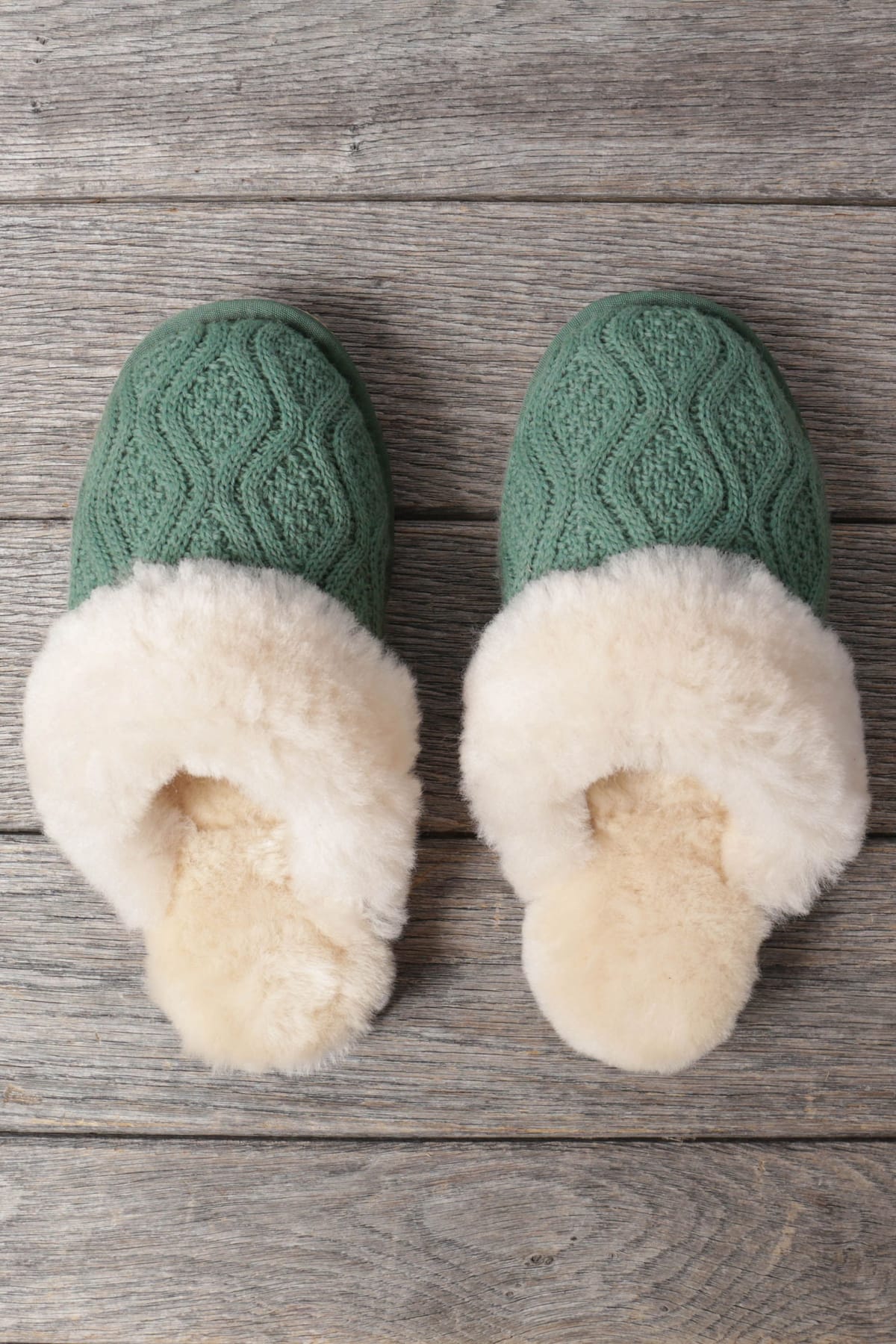 Step into ultimate comfort with these light green cable knit slippers. Featuring a classic cable knit design, these slippers are crafted to keep your feet warm and cosy. The soft, plush lining provides a luxurious feel, while the pull-on style makes them an effortless choice for relaxing at home.