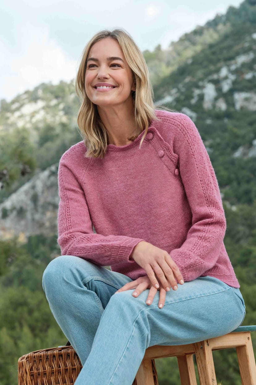 The WoolOvers Pink Cotton/Wool Button Jumper is ideal for casual, everyday, outings.