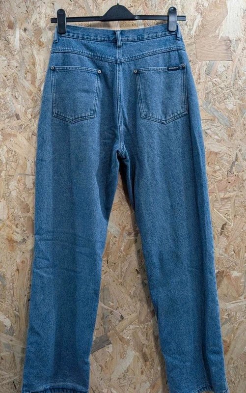 These vintage Woolrich jeans feature a tapered leg silhouette, crafted from blue denim fabric with a cozy fleece lining for added warmth.