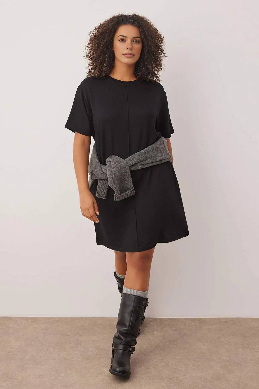 The WOVCOR Black Relaxed Fit T-Shirt Mini Dress is available in sizes 2XL.