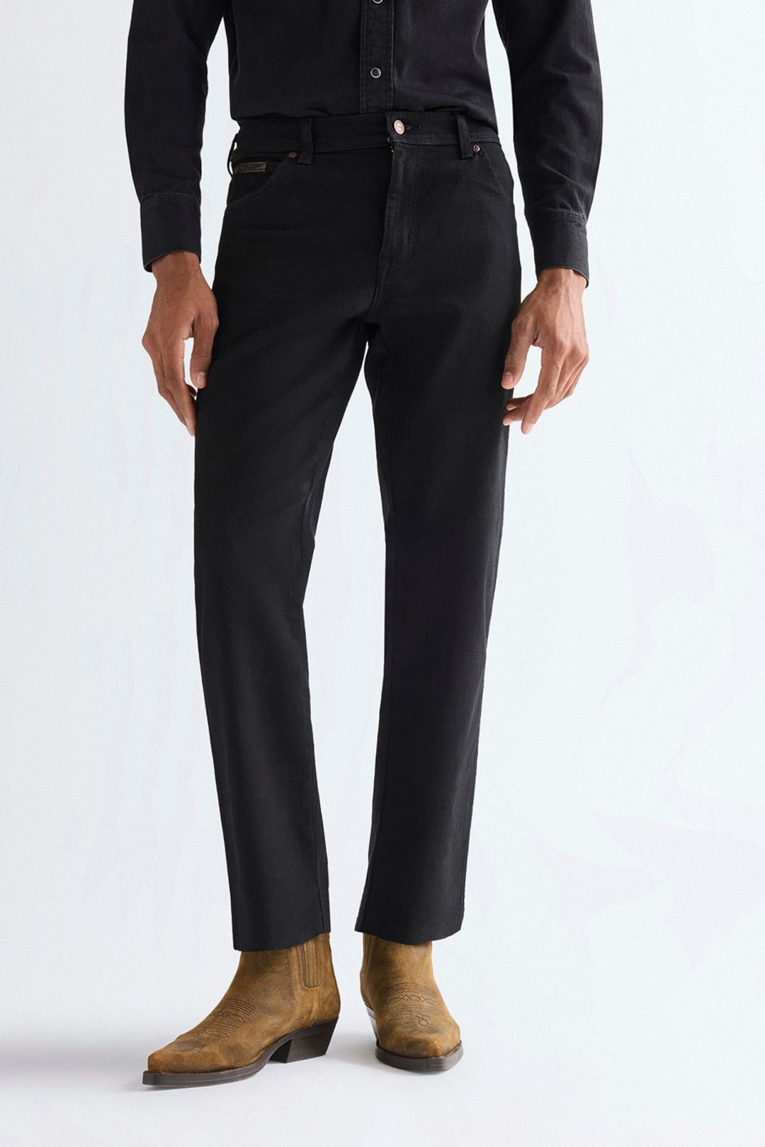 Classic black overdye jeans with a regular fit from Wrangler. Perfect for a casual yet stylish look.
