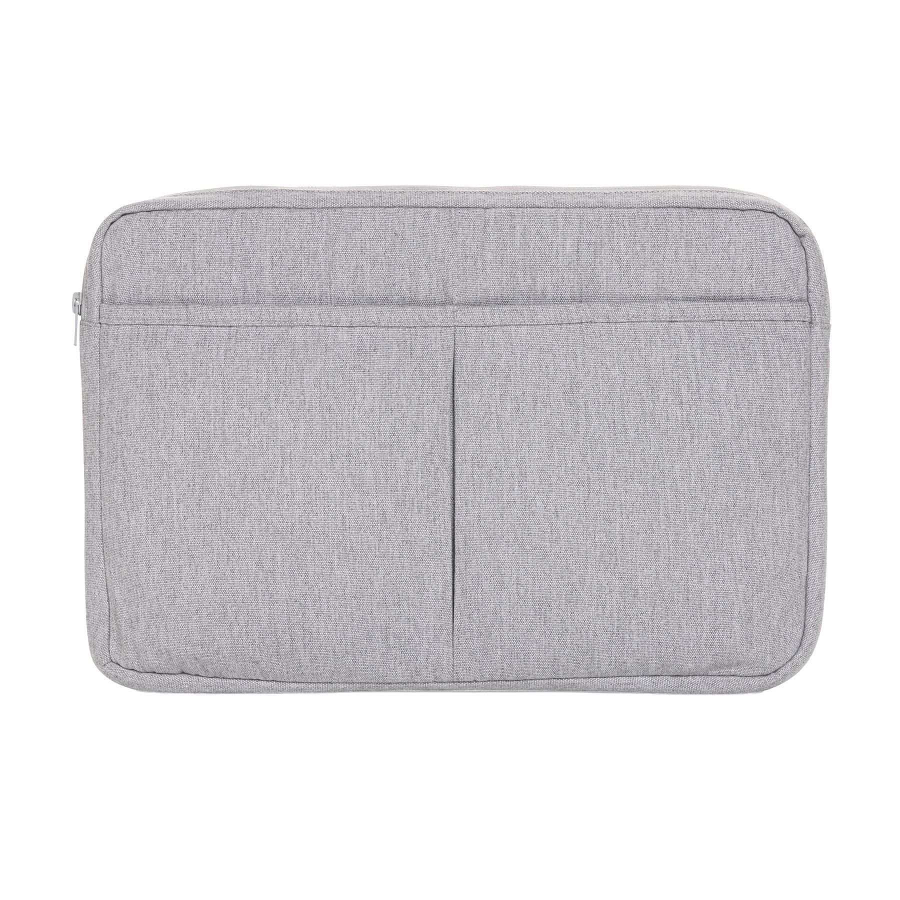 Stylish grey cotton twill laptop sleeve with a padded 15.6" laptop compartment. Features two front pockets and a main zipped compartment. Designed for professional use with Aware Tracer technology.