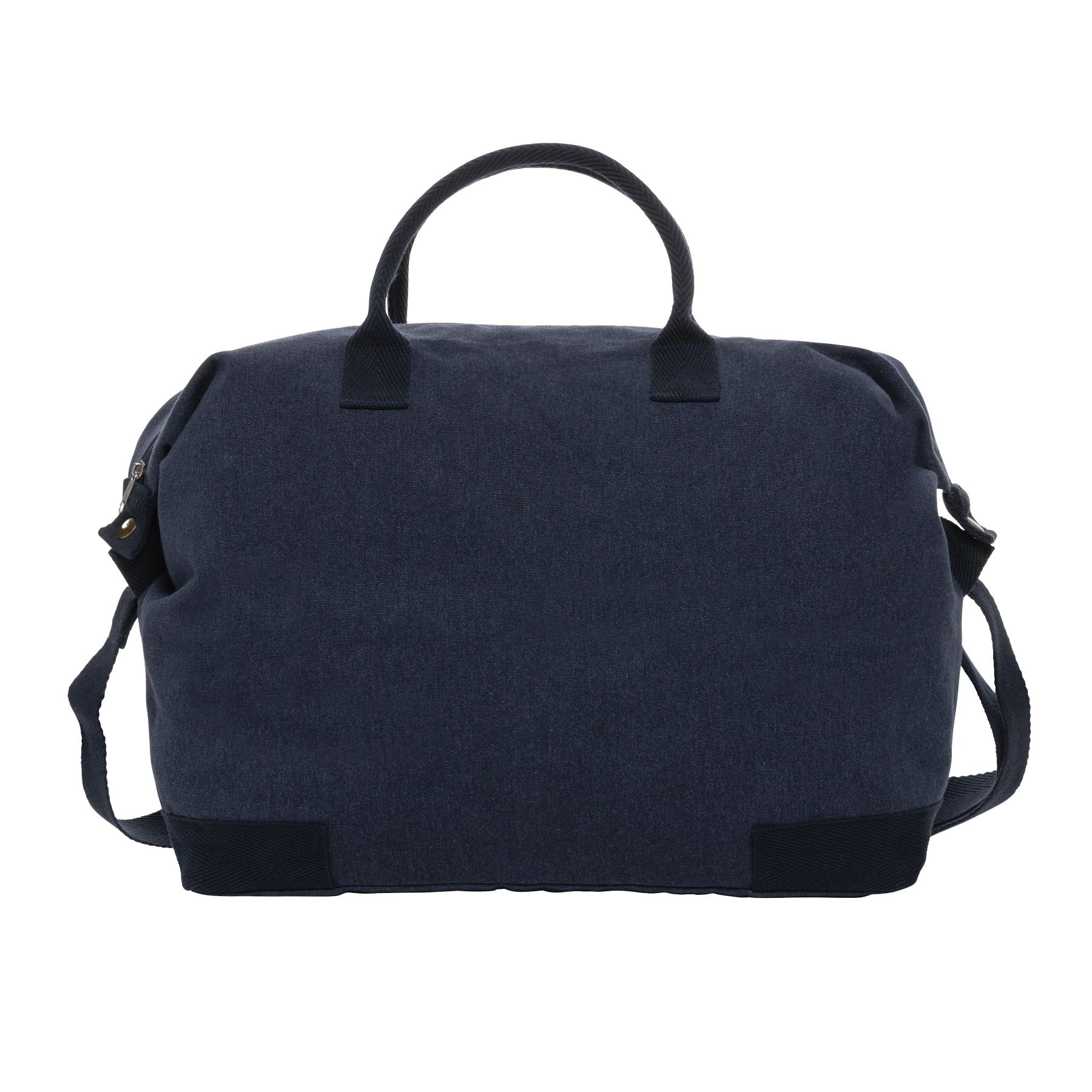 Stylish navy canvas weekend bag by XD Design. Features a plain design, zipper closure, and adjustable shoulder strap. Perfect for weekend getaways or casual outings.
