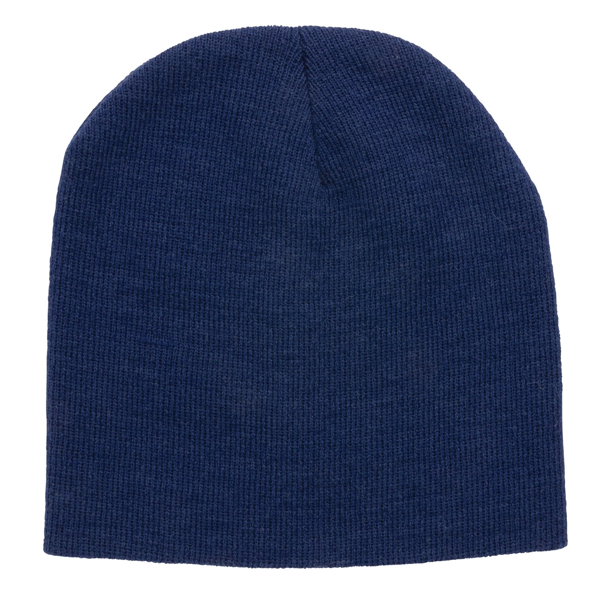 Stylish navy beanie crafted from acrylic yarn. Features a plain design and a lightweight construction. Ideal for casual wear and outdoor activities.