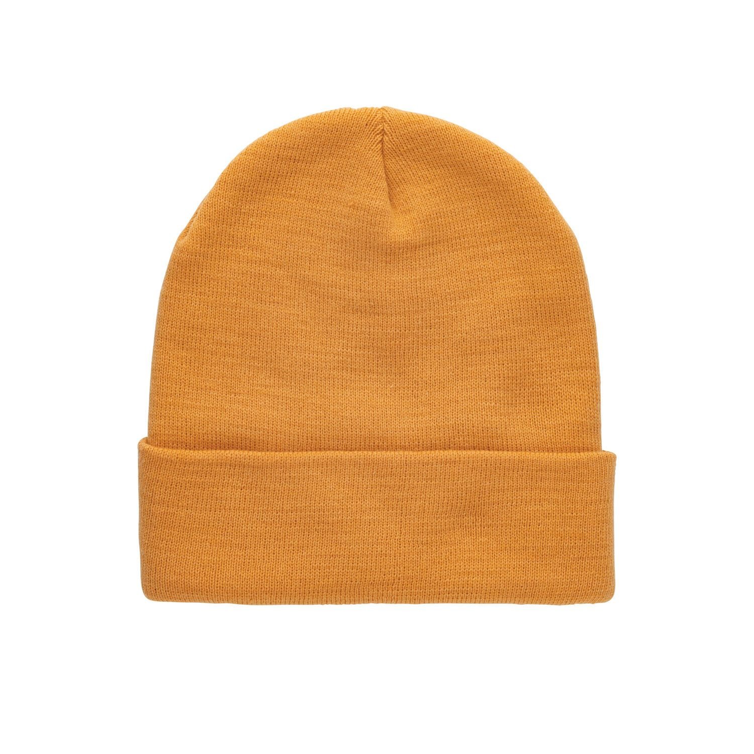 This pale orange beanie is crafted from Polylana fabric, offering a soft and warm feel. Its plain design and turned-up cuff make it a versatile accessory for any outfit. Ideal for casual and outdoor activities.