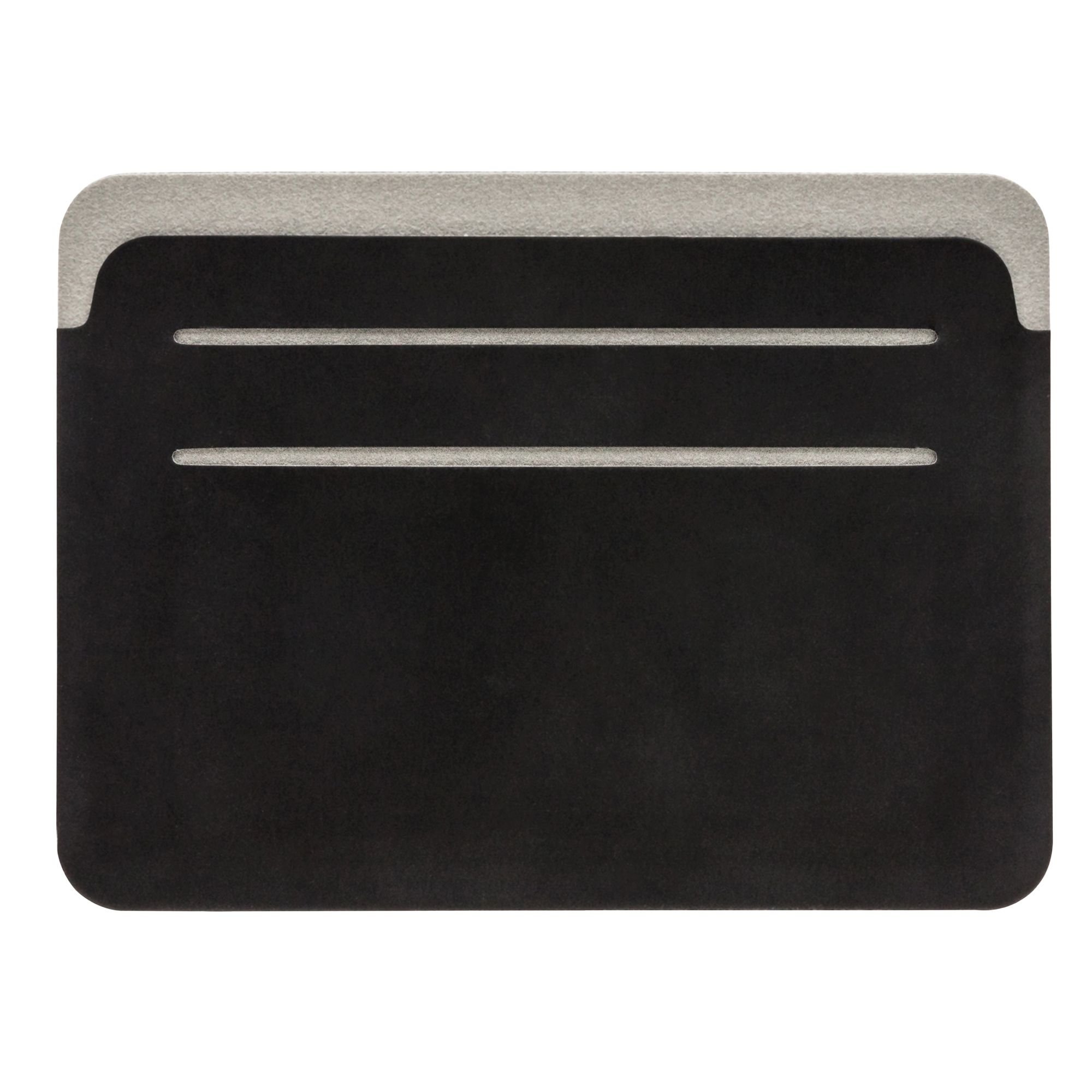 Sleek black polyurethane card holder with a matte finish and four card slots. Designed for RFID protection and lightweight convenience. Ideal for everyday use.